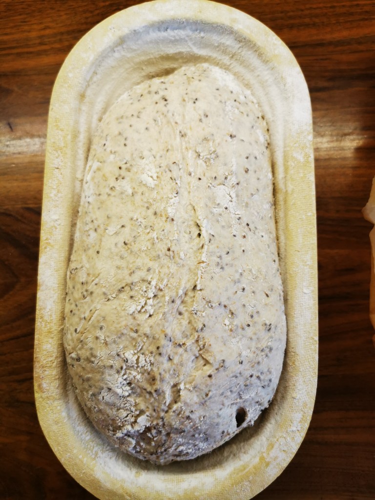 ❽ Po odpočinku, si pripravím ošatku vysypanú kukuričným škrobom, alebo ak máte bavlnené podstieľky do ošatiek nemusíte vysypať ničím (inak super vec).