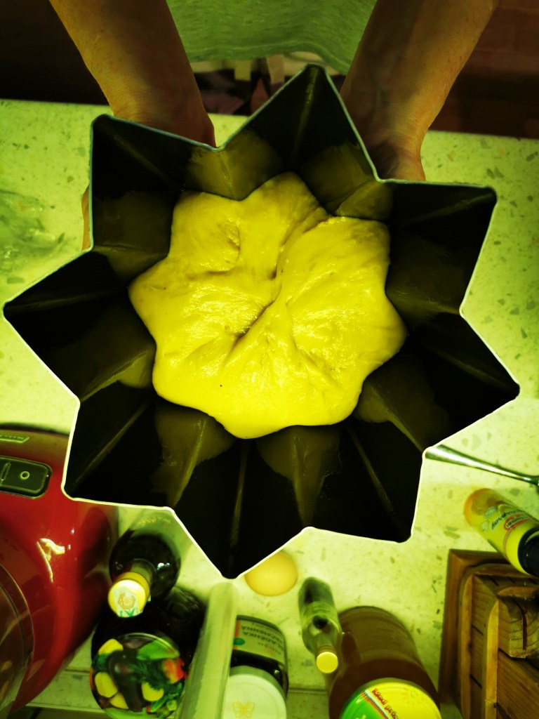 Pripravím si nádobu na pečenie, ja som si kúpila v tvare hviezdy špeci na PANDORO áno je krásna, ale ak nemáte, skúste upiecť vo vyššej bábovkovej forme a na budúci rok si zoženiete origoš na pandoro.
