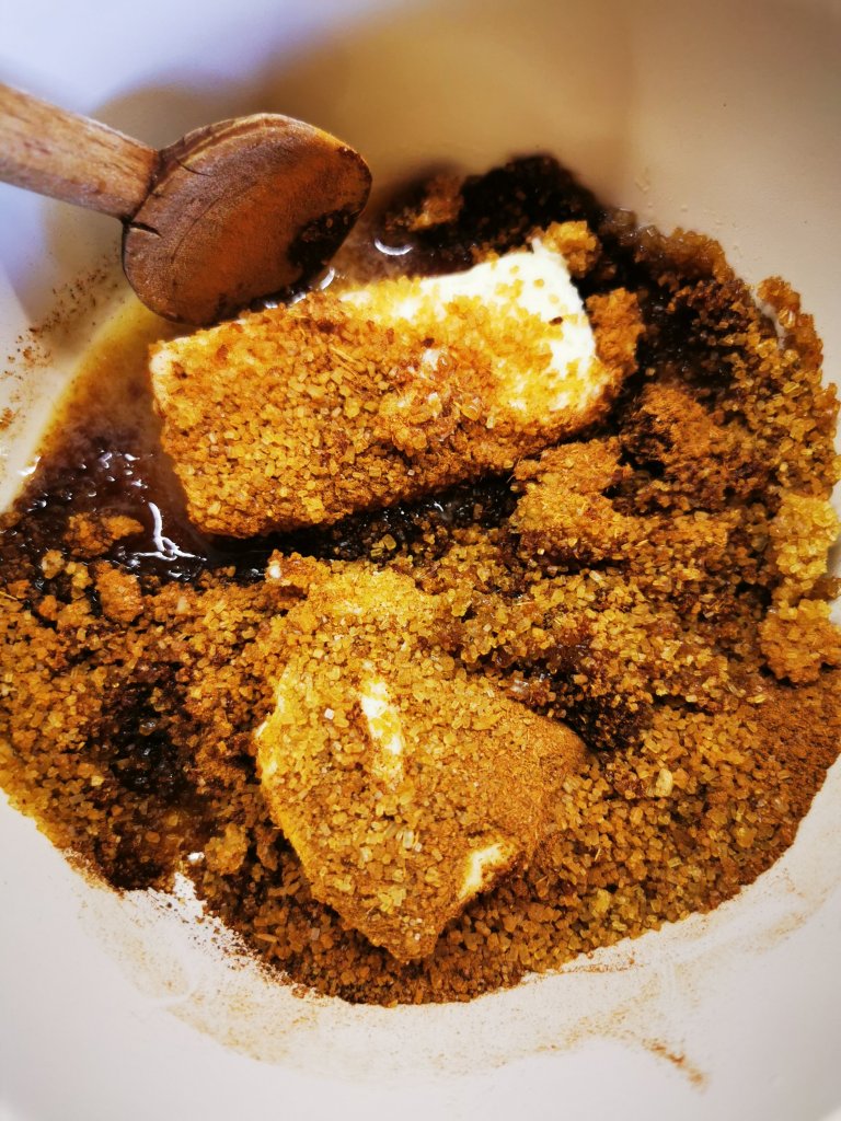 Rozpustiť – nevaríme a nechať vychladnúť. Najskôr natrieme škoricu a potom jablká. Postupujeme podľa receptu na blogu.