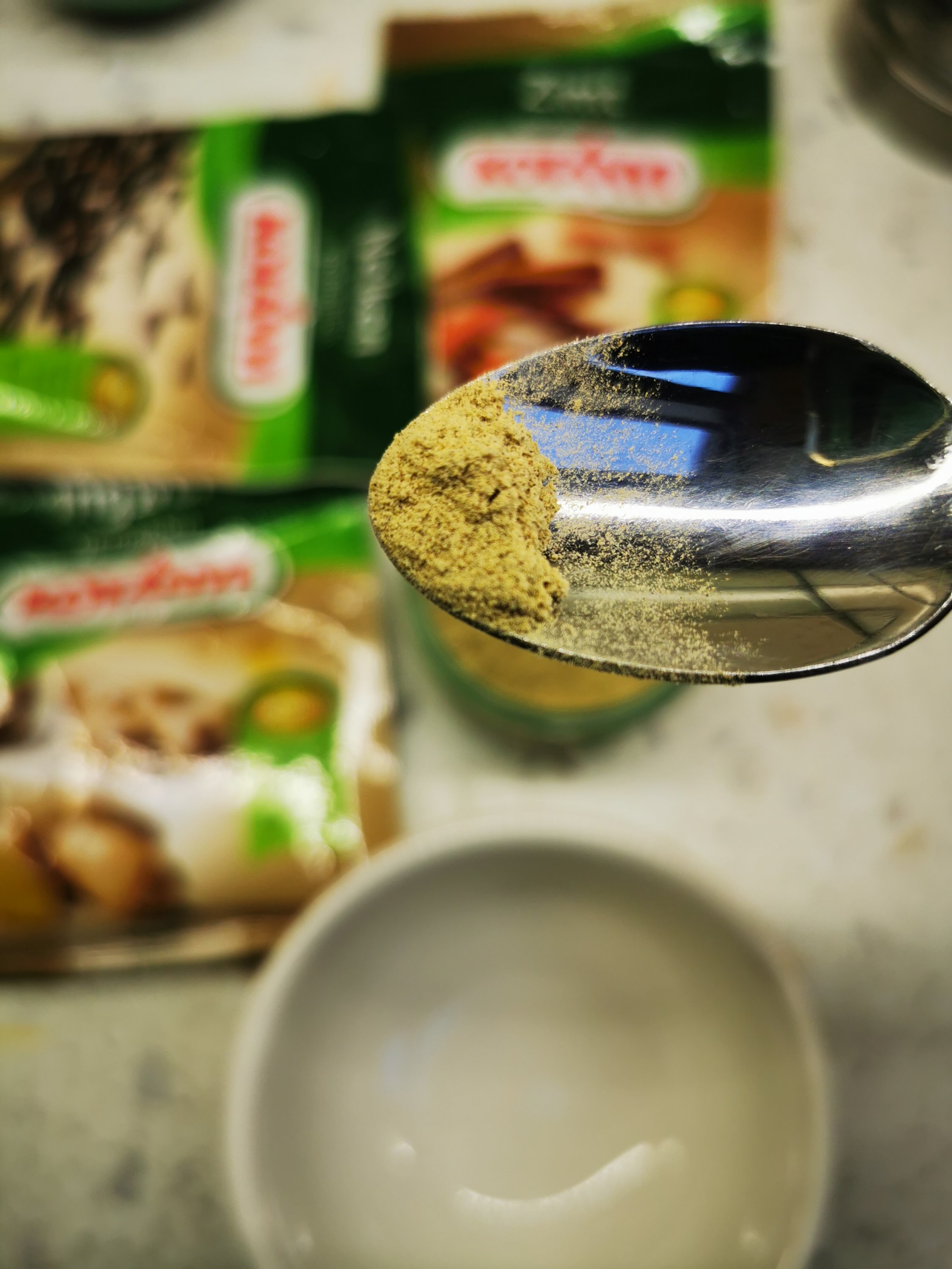zmes mletého korenia : škorica, zázvor, klinčeky, kardamón, aníz, vanilka =množstvo je znázornené na fotke dole vždy na špic malej lyžičky