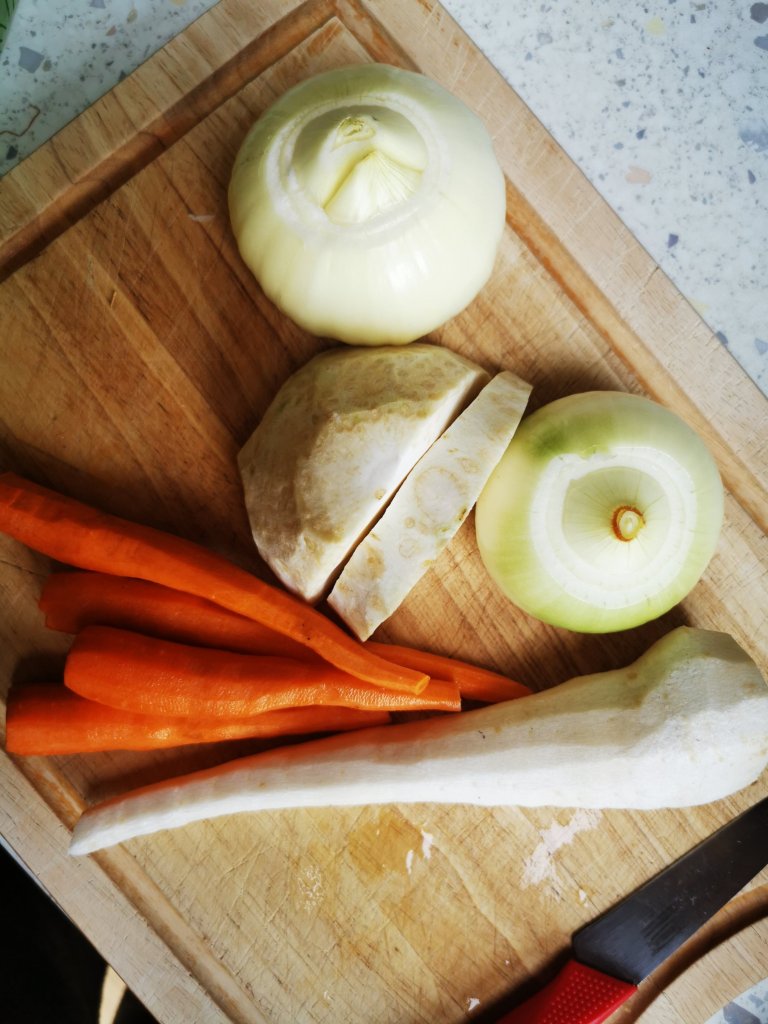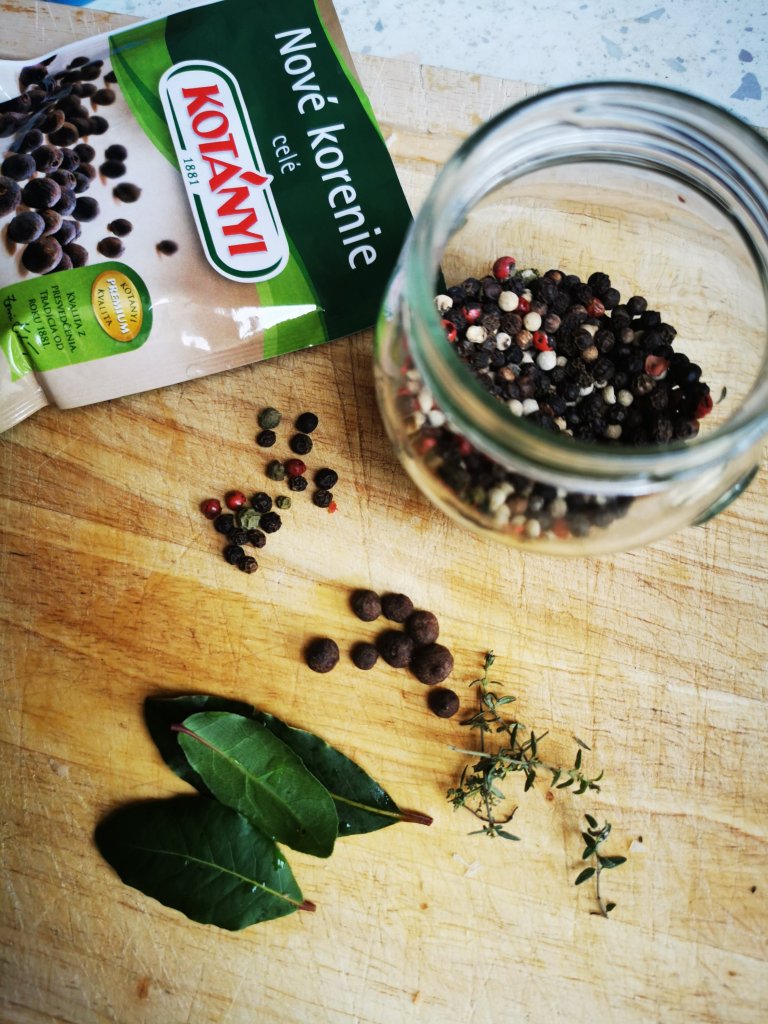 Množstvá máte pekne vyfotené na fotkach, odporúčam porátať si korenie aj bobkový list pretože to oceníte, keď budete vyberať pred mixovaním 👍.