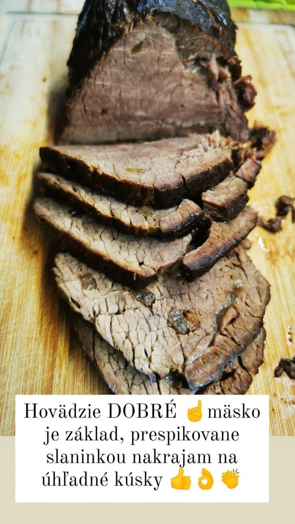 Mäso : hovädzie mäso….tak tu ma môže nachytať každý, lebo čo som nikdy nebola tak v predajni mäsa 🙈, no áno, máme domáce takže napíšem čo mi povedali naj je falošná sviečková tzv.plece (vraj)